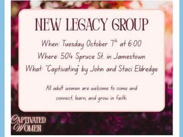 Naomi Shrader has become an oasis for the Jamestown area as they gather to learn about being "Captivating" as adult women. Each group gathers to connect, learn, and grow their faith in the Kingdom of God.